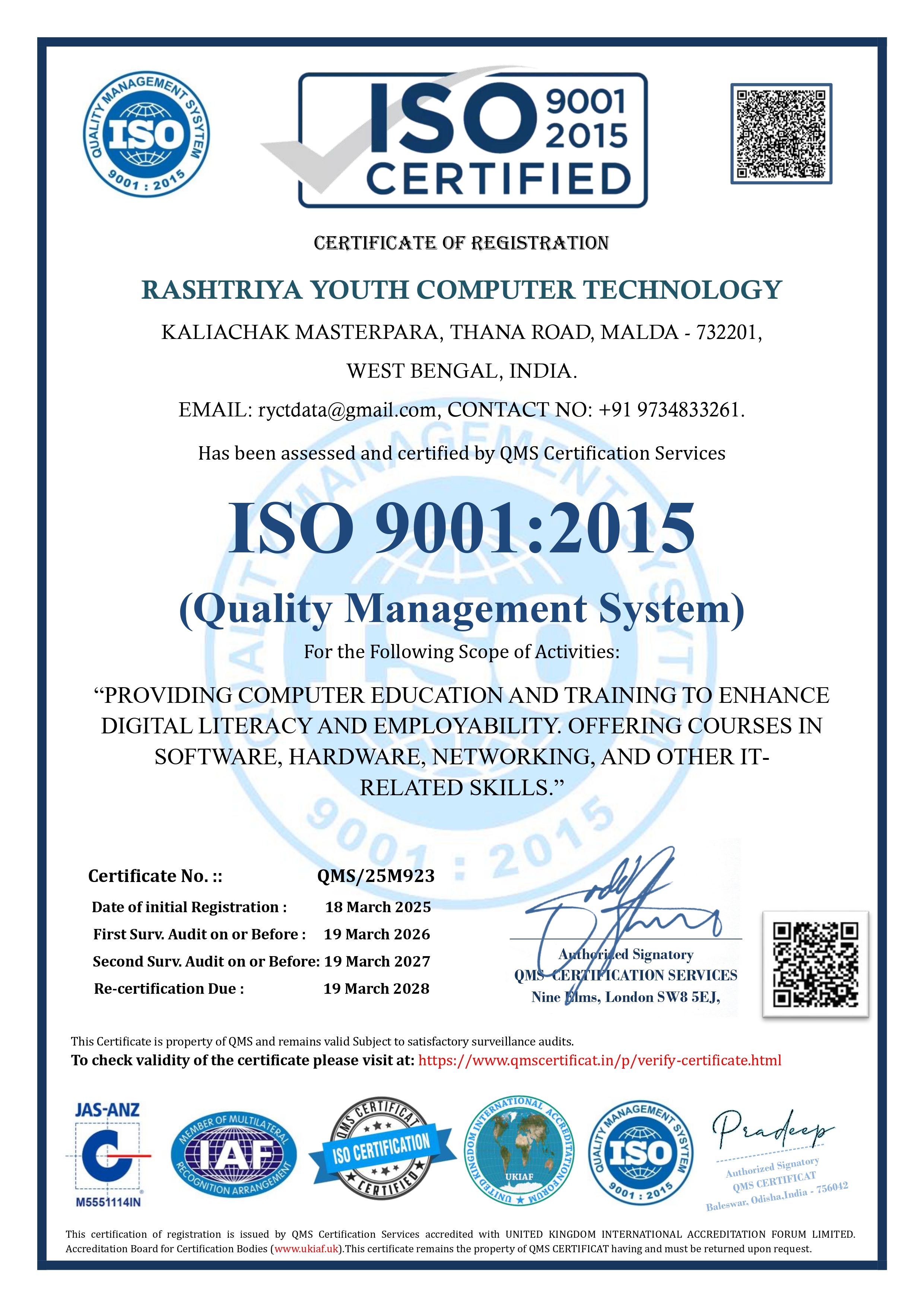 ISO 9001 2015 Certified Institute